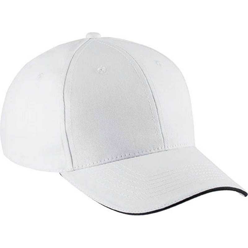 100 % bavlna.6-panelová čiapka s kontrastným sendvičovým šiltom.Nastaviteľné zapínanie s kovovou prackou a samosvornou slučkou.