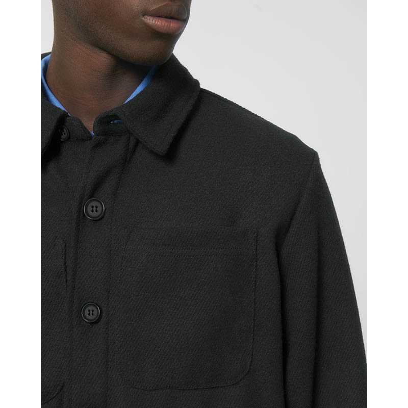 Unlined shirt jacket Set-in sleeve Self fabric collar with collar stand Button down front placket with one button on sleeve cuff Chest pockets and side seam pockets on both sides Inside hanger loop in grosgrain tape Spare buttons attached on inside seam