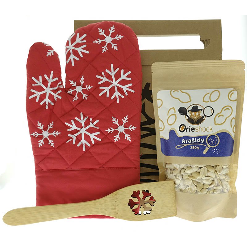Varecha, Kuchynská chňapka, Arašidy vrecko 250g. Darčeková taška 30x23x10 cm