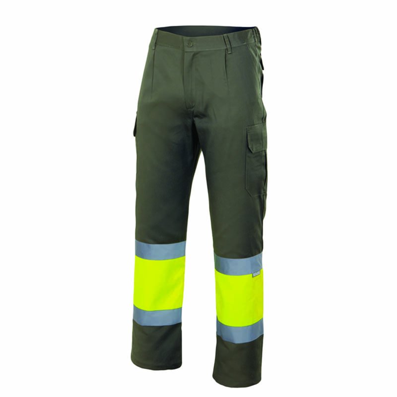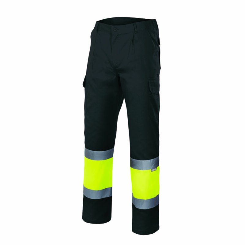 Enhanced Visibility Multi-Pocket Work Trousers. Made of complex bi-stretch fabric that improves user mobility and a water-repellent finish for greater comfort, includes two thermo-fixed elastic reflective tapes on leg cuffs for enhanced visibility and unrestricted movement. Garment certified as an Enhanced Visibility Category II PPE based on 13688 and 17353 standards, type B2 for night visibility.Two slanted hip pockets, two side velcro flap cargo pockets and a two-tone reflective puller for easy opening, two buttonhole closure back pockets for easy access and convenient storage.Double main seams and extra high-wear reinforcements with safety bartacks, ensuring long-lasting strength and durability. Suitable marking methods: embroidery, stitching and anti-sublimation heat-stickers.Ideal as workwear and uniforms.