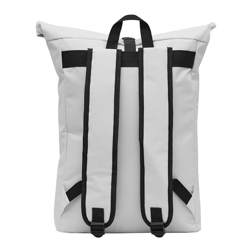 NOVINKA 2025. Backpack ROLL-TOP: made from recycled plastic (RPET), zipped front compartment, large main compartment with padded interior compartment for laptop or tablet, top can be rolled up and fastened with snap closure, grab handle, padded bottom, sh