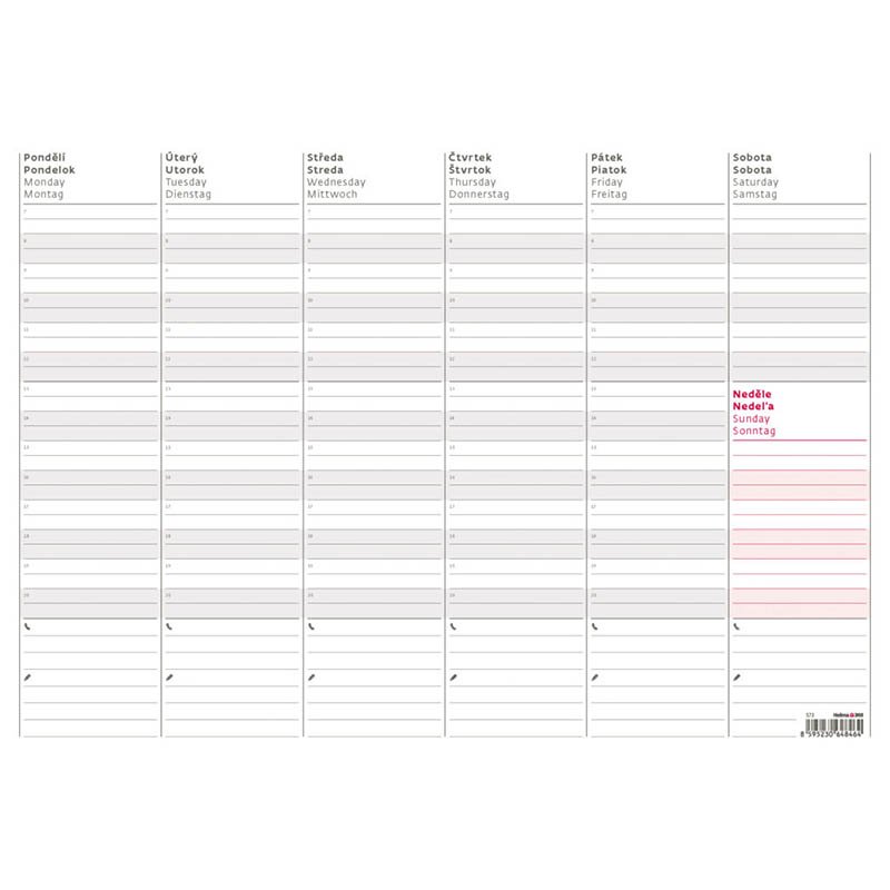 Týždenná plánovacia mapa A3. Formát: 45 x 31,5 cm. Rozsah: 50 listov. Možnosť dokúpenia lišty S75 – lišta nie je súčasťou výrobku. Kalendár má lepenú väzbu v hornej časti