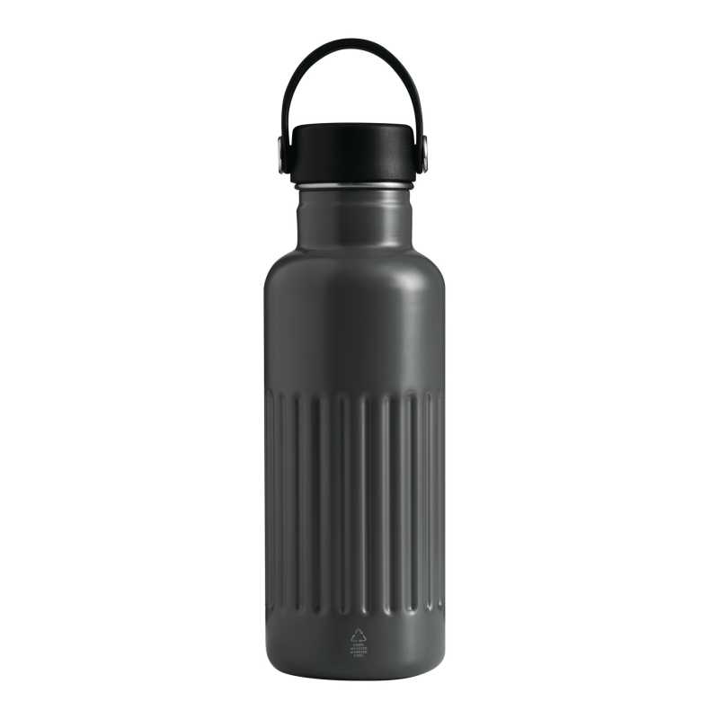 Izolační láhev z recyklované nerezové oceli (90 % recyklované nerezové oceli a 10 % nerezové oceli). Víčko s držátem. Objem: 500 ml.