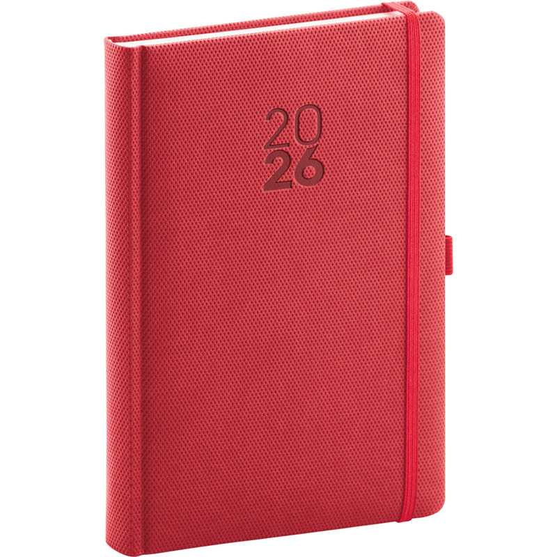 Denný diár Diamante 2026 v červenej farbe. Povrch diára má jemnú štruktúru pripomínajúcu výbrus diamantu a je ideálny pre všetky typy razieb. Diár má zaguľatené rohy, pútko na ceruzku a elastickú gumičku. Denný rozvrh s česko-slovenským kalendáriom a doplnkovou angličtinou, nemčinou, maďarčinou a ruštinou.• kalendárium od decembra 2025• mesačný plánovací kalendár 2026 • mesačný plánovací kalendár 2027• ročný plánovací kalendár 2026–2027 • pracovný plánovací kalendár • sviatky Českej a Slovenskej republiky a