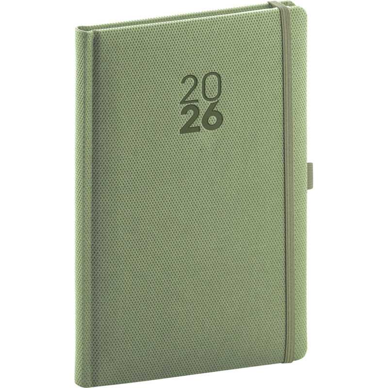 Týždenný diár Diamante 2026 v olivovej farbe. Povrch diára má jemnú štruktúru pripomínajúcu výbrus diamantu a je ideálny pre všetky typy razieb. Diár má zaguľatené rohy, pútko na ceruzku a elastickú gumičku. Týždenný rozvrh s česko-slovenským kalendáriom a doplnkovou angličtinou, nemčinou, maďarčinou a ruštinou.• kalendárium od decembra 2025• mesačný plánovací kalendár 2026 • mesačný plánovací kalendár 2027• ročný plánovací kalendár 2026–2027 • pracovný plánovací kalendár • sviatky Českej a Slovenskej republiky a medzinárodné sviatky •Mapa Českej a Slovenskej republiky • miesto pre osobné údaje • textilná záložka • perforované rožky • priestor na poznámkyRozsah: 144 strán. Rozmer: 15 x 21 x 2 cm. Hmotnosť: 0,28. Papier: 90 g/m2 krémový papier. Väzba: tuhá knižná s gumičkou a pútkom na ceruzku. Kalendárium: 6 jazyčné (CZ, SK, GB, DE, HU, RU) .