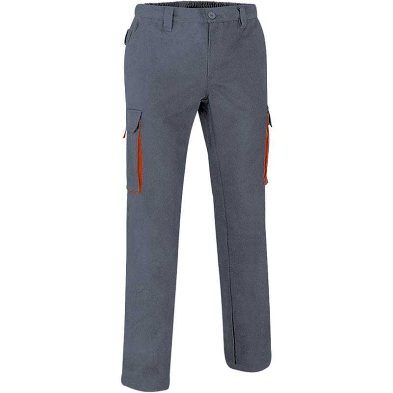 Two-Tone Multi-Pocket Work Trousers.Made of a sturdy cotton twill fabric blended with polyester for strength and durability.Button-and-zipped flap fastening, back elasticated waistbands and belt loops for a better adjustment and a comfortable fit.Two slanted hip pockets, two back pockets and two side pockets, all four with velcro flap closure for a secure and convenient storage, and a puller for easy opening. Double main seams and extra high-wear reinforcements with safety bartacks, ensuring long-lasting strength and durability.Suitable marking methods: screen printing, embroidery, transfer printing, vinyl application.Ideal as workwear and uniforms, this pair of trousers matches all THUNDER line items (sweatshirt, T-Shirt, fleece jacket, polo shirts, softshell jacket, and vest).