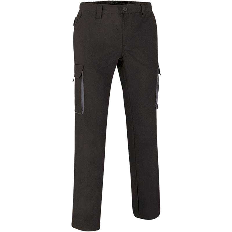 Two-Tone Multi-Pocket Work Trousers.Made of a sturdy cotton twill fabric blended with polyester for strength and durability.Button-and-zipped flap fastening, back elasticated waistbands and belt loops for a better adjustment and a comfortable fit.Two slanted hip pockets, two back pockets and two side pockets, all four with velcro flap closure for a secure and convenient storage, and a puller for easy opening. Double main seams and extra high-wear reinforcements with safety bartacks, ensuring long-lasting strength and durability.Suitable marking methods: screen printing, embroidery, transfer printing, vinyl application.Ideal as workwear and uniforms, this pair of trousers matches all THUNDER line items (sweatshirt, T-Shirt, fleece jacket, polo shirts, softshell jacket, and vest).