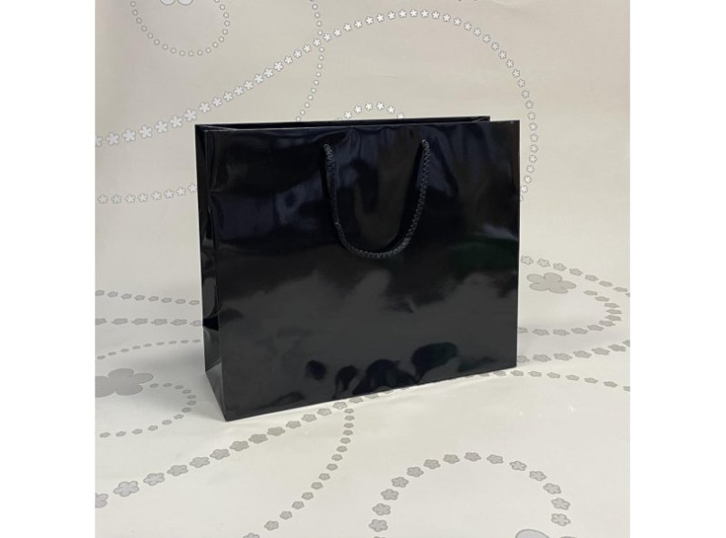 Rozmer: 38x13x31 cm ; Materiál: 170 gr.kriedový+100%čierne lesklé lamino ; Balenie: 150 ; Minimálny odber: 150 ks