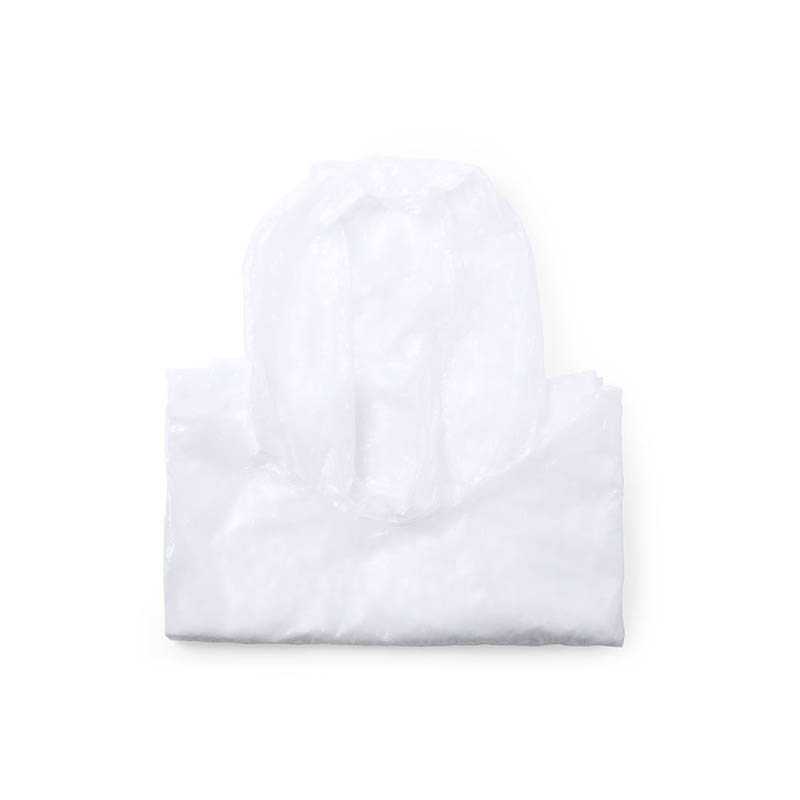 NOVINKA 2025. Adult size poncho in white, frosted color -size 127x102 cm-. Presented in an individual case with lid and matching color carabiner. Case available in a wide range of colors. One size fits all.