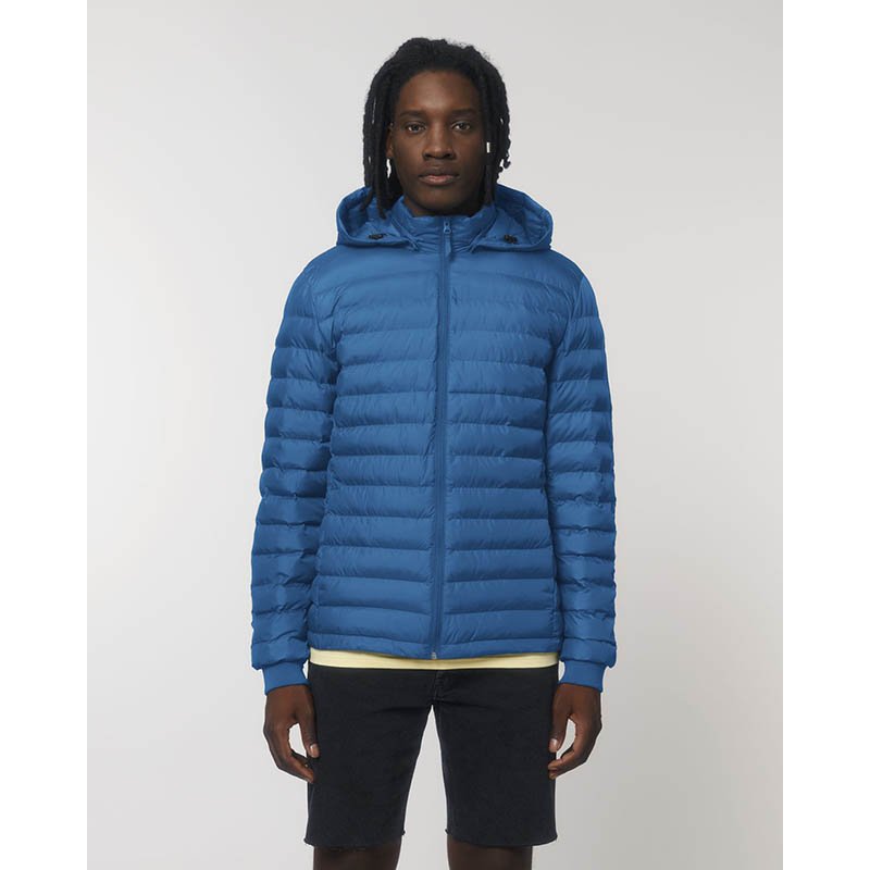 GRS ripstop polyester 360T potažený PU. Lehký polstrovaná bunda s tvarovanou kapucí. Recyklovaný polyester. O 25 % prvotřídního polstrování DuPont™ navíc než u stylu 9644. Ripstopová tkanina 1x1 v matném provedení. Zip SBS. Vnitřní kapsa. 2 velké přední k