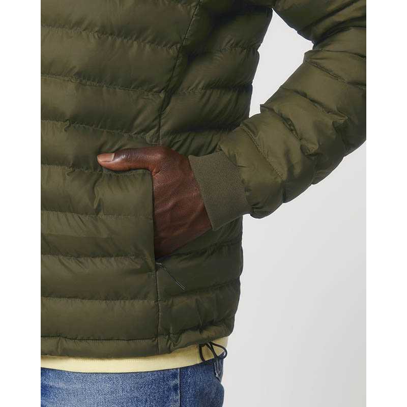 GRS ripstop polyester 360T potažený PU. Lehká zateplená bunda. Recyklovaný polyester a zateplená prvotřídním polstrováním DuPont™. Ripstopová tkanina 1x1 v matném provedení. Zip SBS. Vnitřní kapsy. 2 velké přední kapsy. Neviditelné elastické manžety. Nast