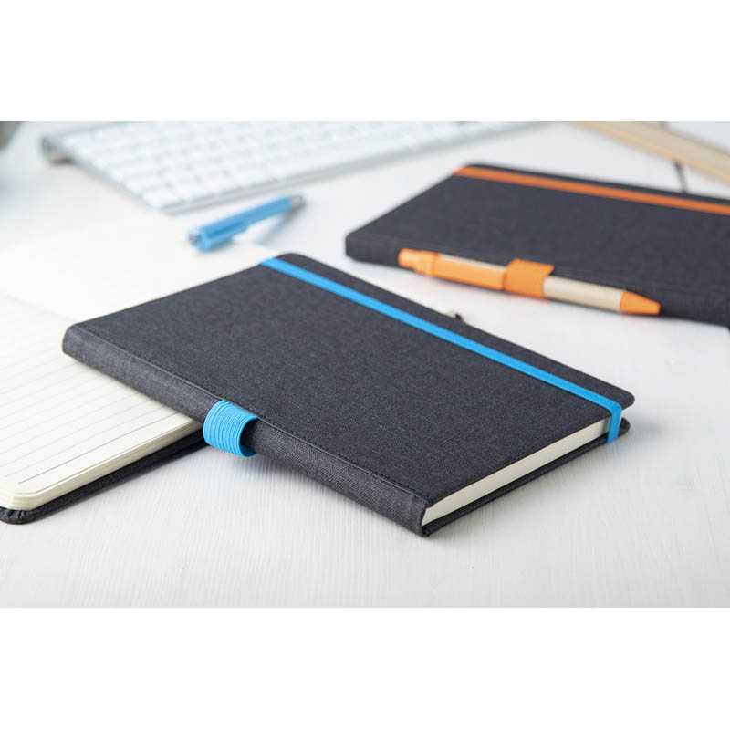 Zápisník A5 s tvrdými PU deskami, přední kapsou na telefon a poutkem na pero. 160 linkovaných stran z recyklovaného papíru (80 listů). Záložka v odpovídající barvě.
