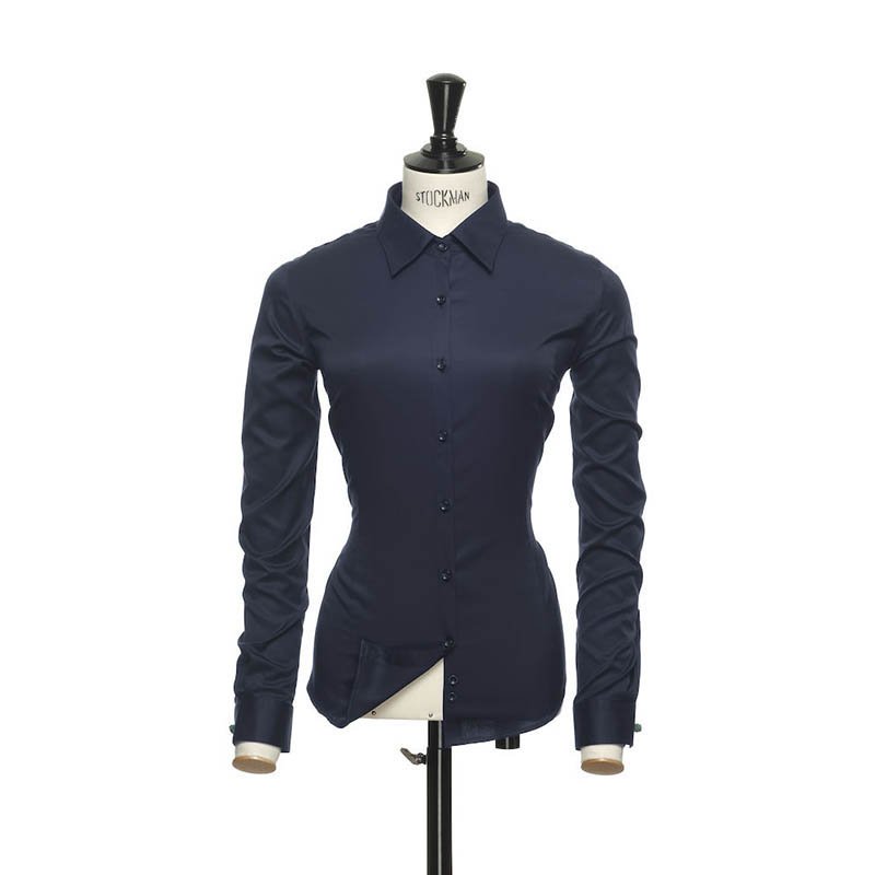 Finally we added a new woman fit to our shirt lines. The fit is like the description, Relaxed but feminine. The A-shaped pleat in back drapes nicely, and gives the shirt the extra volume you are looking for. Tuck it in or wear it as a modern comfy shirt, it works either way. The shirt is crafted in our favorite high performance twill texture. This gives the perfect sheen to it, results in a substantial good hand feeling and makes it less transparent than similar white dress shirts. A split yoke in back, medium cut-away collar and a 35 mm. raised placket set the edge for this sharp, but classic shirt. We even added a free matching handkerchief for you, so you can go all the way this time. • GREEN BOW line • solid colors, 100% cotton, 125 g/m2 • machine washable. non-iron patented environmental treatment • long staple 2-ply compact cotton for the best possible result • split back yoke ensures smooth contoured shoulders, and a greater range of motion. • taped main-seams help the shirt look sharp and neat wash after wash. no wrinkles. • semi cut-away collar • long sleeve. single angel-cuff, with extra buttonhole for cufflinks • tall, 4 mm-thick buttons for a substantial and modern feeling • curved hem