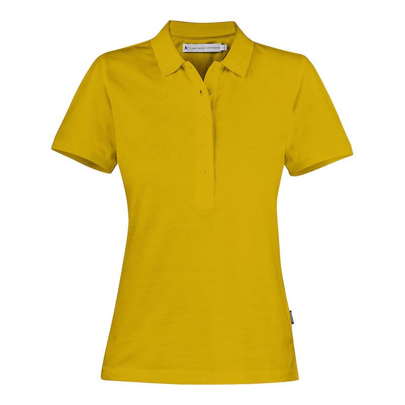 Product Name: Sunset Woman Item Number: 2125034 Product Fabrics: 95% ringspun, combed cotton, 5% Lycra®, 200 g/m2 Description: Ladies stretch pique with Lycra, three buttons at front placket, chest pleats for better fitting. Colours: 100 white, 308 orange vintage, 400 red, 471 light pink, 600 navy, 668 light turqoise, 729 sport green, 900 black
