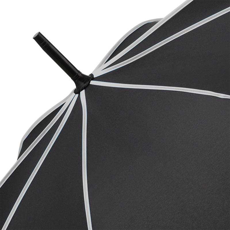Convenient automatic function for quick opening, high-quality Windproof PLUS system for maximum frame flexibility in stormy conditions, flexible fibreglass ribs, striking cover decoration with coloured panel seam pipings, matt/shiny contrasting Soft-Touch handle with integrated push-button and promotional labelling option, coloured handle strap, higher corrosion protection due to black galvanisation of the steel shaft. Also available as mini umbrella (art. 5639).