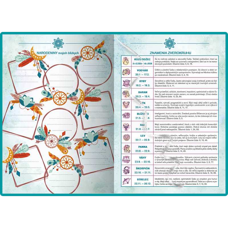 Obľúbený diár s graficky prepracovaným týždenným kalendáriom Vám spríjemní každý týždeň novým mottom. Každý mesiac nájdete súhrn svojich cieľov či myšlienok, ku ktorým Vás nabudia motivačné texty na začiatku každého mesiaca. Počas voľných chvíľ si môžete vymaľovať tematické antistresové omaľovánky. Diár má praktickú flexi väzbu so záložkami. Povrchová úprava - soft touch lamino, efektná razba a 3D lak. Všetky bočné plochy diára sú potlačené farebným motívom. Vhodný ako darček.Kalendárium: SK. Rozsah: 192 listov. Formát: 14,2 x 20,4 cm.