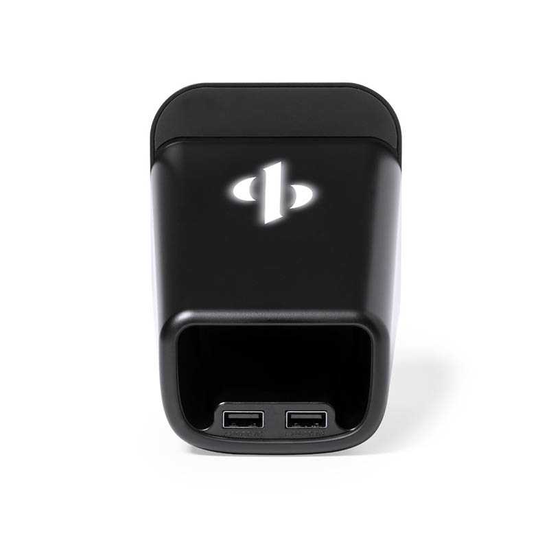 NOVINKA 2025. Multifunctional pen holder with light, specially designed for laser branding and backlighting the logo.With smartphone holder and integrated 15W wireless charger, compatible with devices equipped with Qi wireless charging technology. Including 2 USB outputs (5V DC 2A) and 150cm Type C charging cable. Non-slip base and presented in an individual kraft design box, with instruction manual in English and Spanish.Manufactured according to RoHS standards and in compliance with the following safety requirements:Overheating protection system.Over-charge protection system.Blocking system to prevent short circuits.