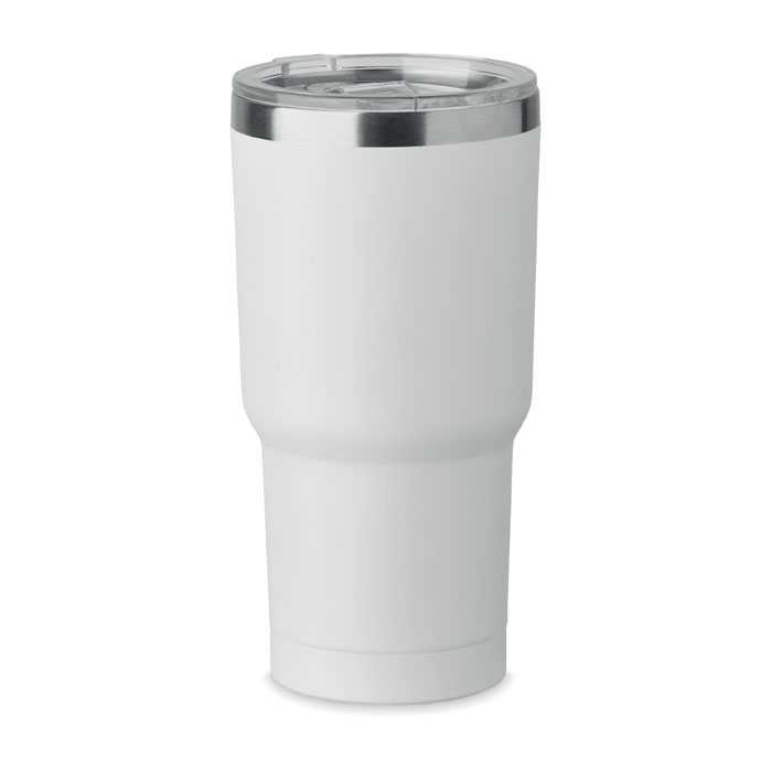 Dvoustěnný pohárek z recyklované nerezové oceli (90 % recyklované nerezové oceli a 10 % nerezové oceli). Víčko s posuvným otvorem pro pití. Objem 550 ml.