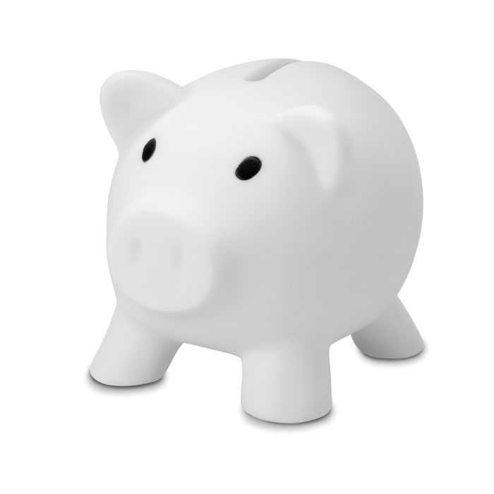Peněženka ve tvaru domu vyrobená z poloprůhledného materiálu. Na dně je uzamykatelné otevření umožňující vybrat úspory. Logo lze tisknout pomocí techniky tisku na podušku.