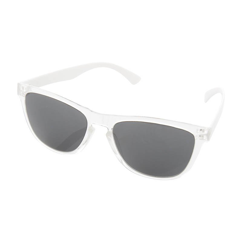 Slnečné okuliare s čiernymi sklíčkami (AC lens) s UV 400. Vyrobené z PP s kovovými skrutkami v pántoch nožičiek pre vyššiu pevnosť. Kategória 3.