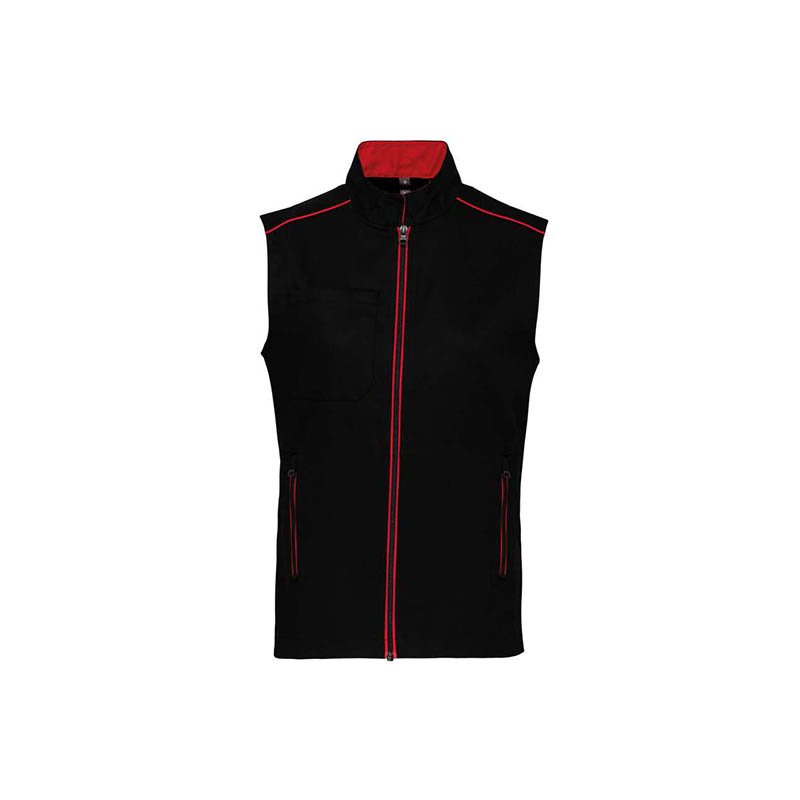 Waterproof 3-layer soft shell vest - Waterproof 8000 mm/H2O - Breathability 1000 g/M2/24h - Front reflective prints on the shoulders - Rear reflective print on the side - Taped zippers - A chest pocket with zip - Two external pockets with zip - Chin protection fabric with reflective print - Elastic fabric at the wrists - Elastic fabric at the bottom