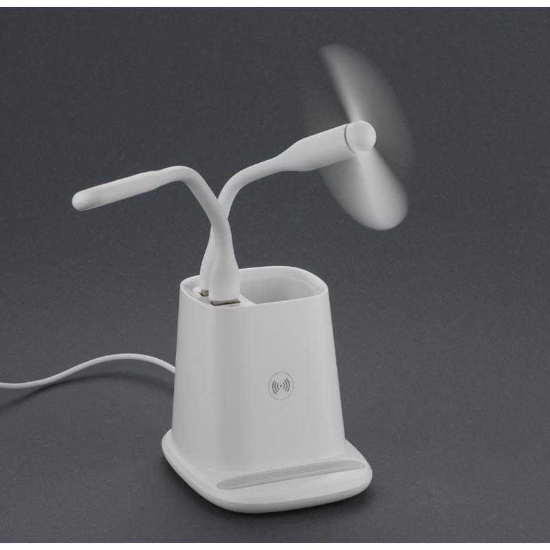 Organizér na stůl BERGO je perfektní pomůcka pro práci u stolu. Má vestavěnou bezdrátovou nabíječku, která slouží také jako stojan na telefon, a dva USB porty, které napájí ventilátor a lampu. Pokud nepoužíváte příslušenství, mohou USB porty fungovat jako hub. Specifikace: micro USB vstup: 5V / 2A, výstup bezdrátové nabíječky: 5W, 2 USB výstupy: 5V / 2A (max.)
