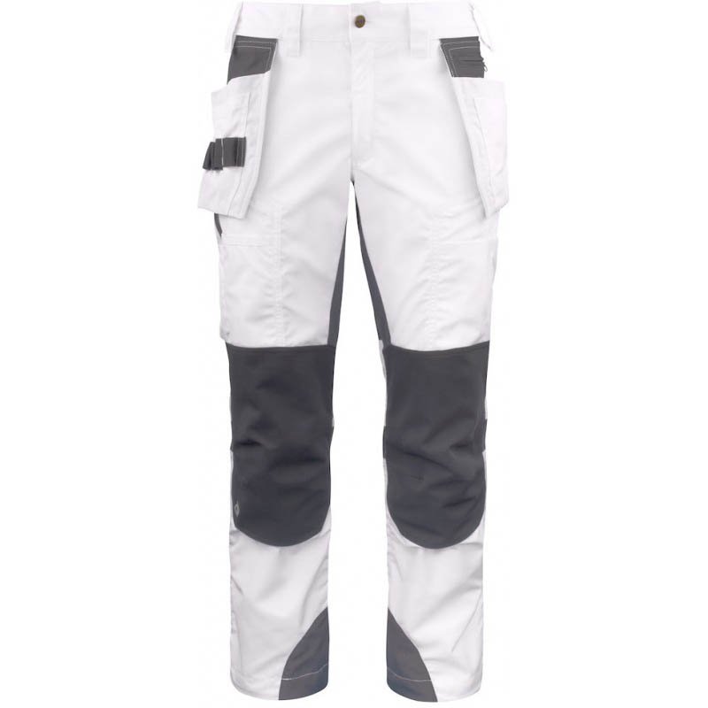 Two hanging nail pockets that can be tucked away, one with exta pockets and one with tool loops. The nail pockets are 100% Cordura® reinforced. Leg pockets with telephone pocket, pen pocket and tool pocket. Two adjustable hammer holders. Two D-rings. Folding rule pocket with tool pocket and knife button. Corudra® knee pad pockets that open from the inside and are height adjustable. Pre-shaped knees. Cordura® reinforced leg ends. Extra wide back pockets, pocket flap on the left side. Back pockets and leg pockets fitted with Inbag loops. ID card holder. Material: 100% cotton, 375 g/m2. Reinforcements: 100% polyamide, Cordura® Safety class: EN ISO 20471 CLASS 1 Colour: Black/Yellow-11,ProJob yellow-10 Size: C44-C62, D84-D120, C146-C156