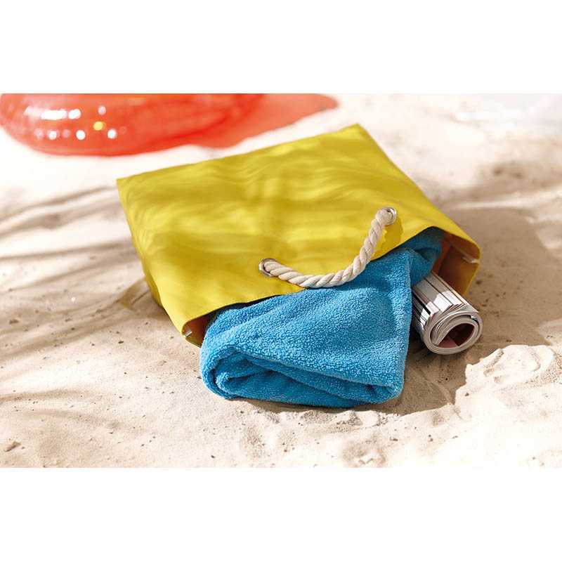 300D polyester beach bag with long handles, zip closure and gusset on bottom