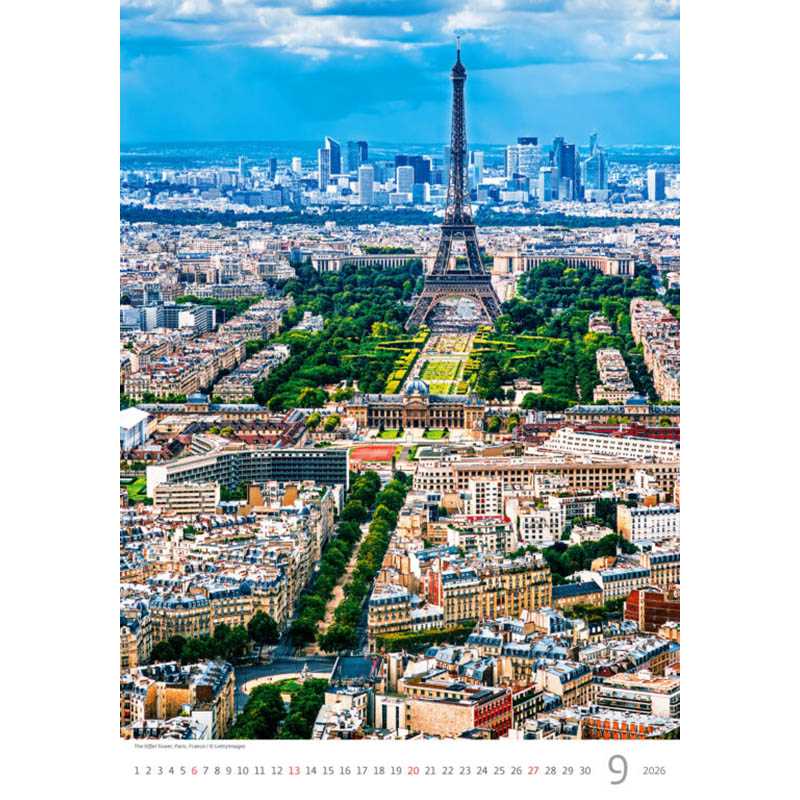 Nástenný kalendár Europe 2026. Formát kalendára: 31,5 x 45 cm. Kalendárium: mesačné medzinárodné. Rozsah kalendára: 14 listov. Twinová väzba. Priestor na potlač: 31,5 x 7 cm