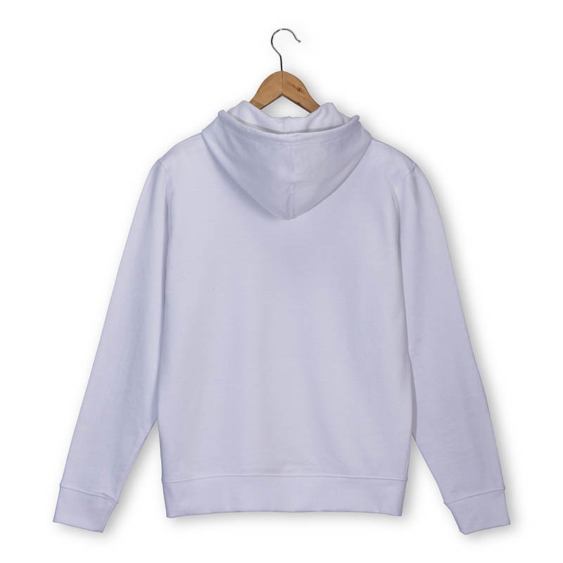 NOVINKA 2024. 100% regenerated fabric. Unisex hooded sweatshirt, fleece interior. Double-layer hood, metal eyelets, metal-tipped drawstrings, large pouch pocket, ribbed cuffs and bottom hem, side seam construction. 280 g/m2. 60% recycled cotton/ 40% recy