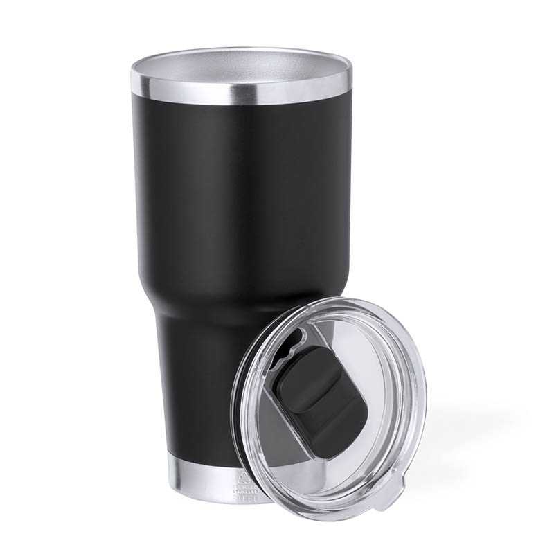 NOVINKA 2025. Insulated cup made of recycled stainless steel, double walled, 600 ml capacity. With dispenser in lid and easy-opener, BPA free. It is ideal for your desk, table, or any surface where you can enjoy your favorite drink. With Recycled Stainless Steel logo. Steel is one of the most sought-after materials and can be found almost everywhere, from everyday products to large constructions. It has countless properties, including durability and a high degree of reusability, making it a highly valued alternative in sustainability solutions. Properly treated, it allows new resources of infinite use to be obtained