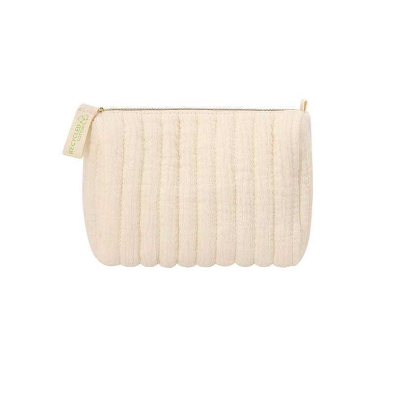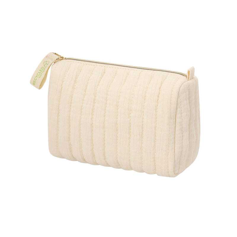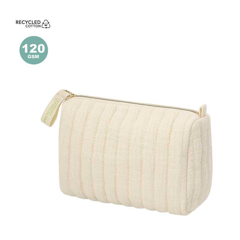 NOVINKA 2025. Padded design recycled cotton toiletry bag. Interior lining. Includes recycled cotton tag on the zipper pull.