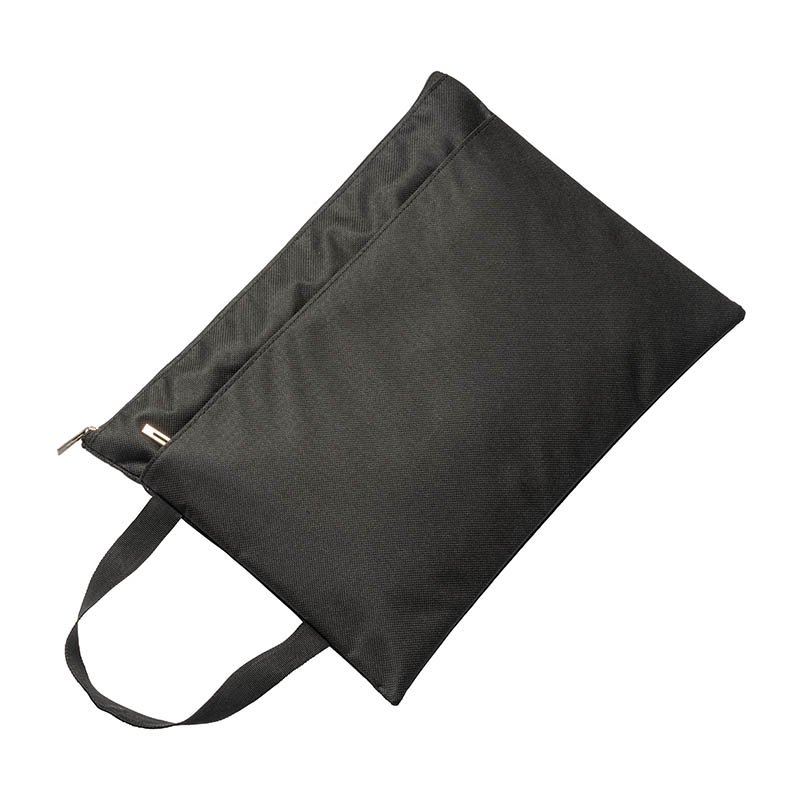 Polyester document holder with front pocket, zip closure and practical handle