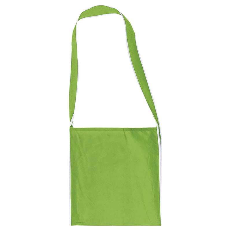 Two-Tone Long-Handled Non-Woven Crossbody Bag. Made of lightweight and water-repellent non-woven fabric with embossed finish. Hemmed top contour, handle and side seams edged with reinforced fabric and thread for added strength. Gusseted sides to provide greater capacity. With volume of 8 litres and a load capacity of approximately 10kg. Suitable marking methods: screen printing. Ideal for a corporate gift, a personalised gift and daily use.