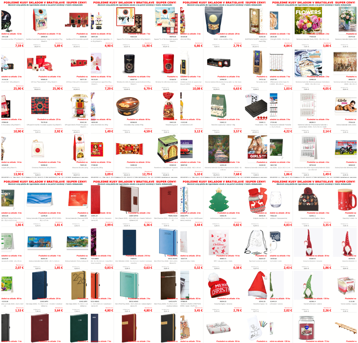 Uvedené ceny v DARCEKY-RYCHLO-SKLAD_BA sú platné iba na kusy uvedené v zozname. Všetky uvedené ceny sú bez DPH. Zoznam skladových zásob je aktualizovaný denne. Keďže zásoby sa každým dňom menia, objednaný tovar Vám najskôr potvrdíme. Tovar je na dobierku s platbou kuriérovi alebo platba zálohovou faktúrou.